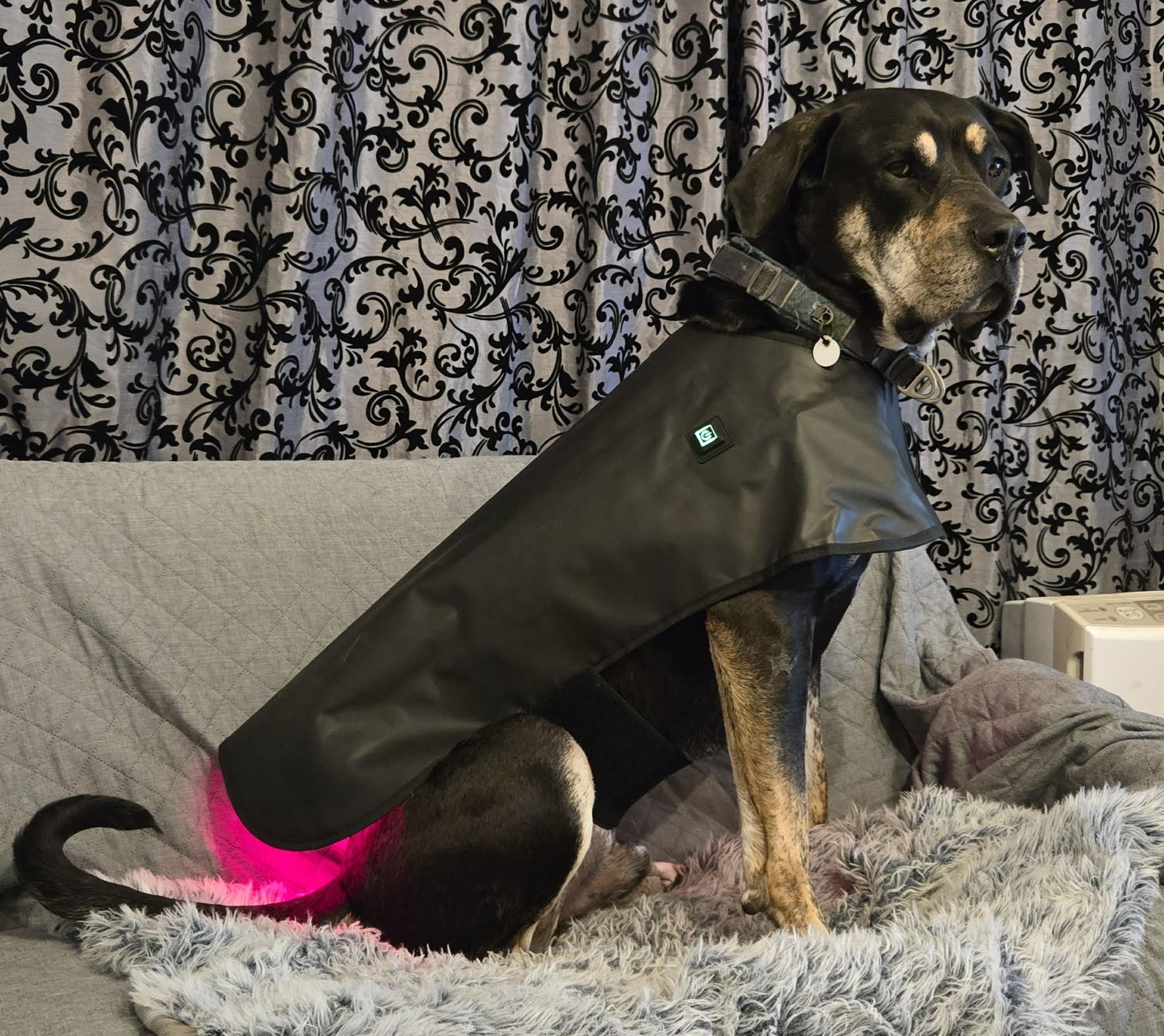 Canine laser jacket (model is wearing a size large)